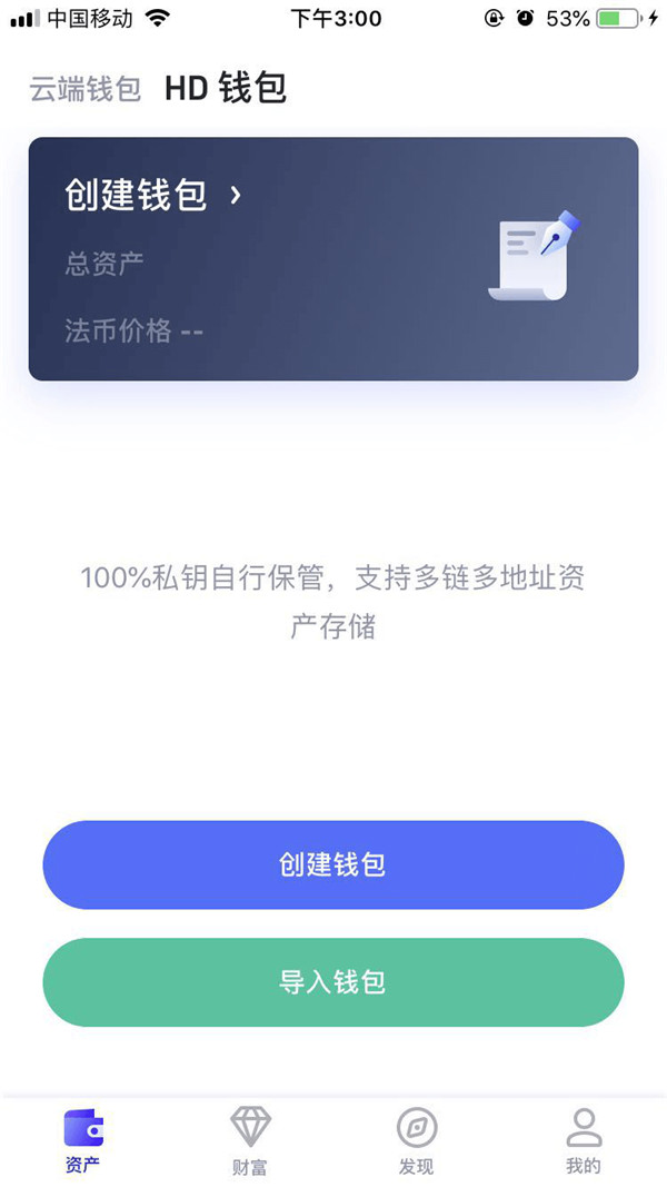 如果您选选用「HD钱包」,可在首页左上角点击切换到「HD钱包」