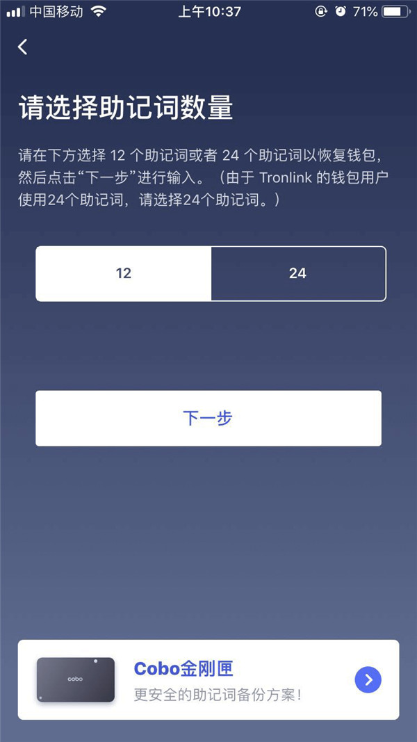 如果您是刚刚接触Cobo,可以点击「创建钱包」创建属于自己的Cobo钱包,创建完成后请务必备份保存好助记词,推荐使用Cobo助记板备份保存,防火防水,不会出现抄写错误的情况。
