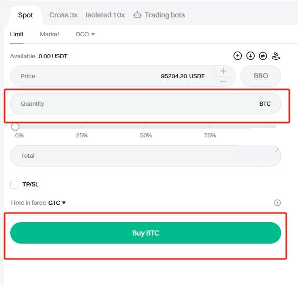 7、输入买入BTC数量,点击买入BTC就可以了