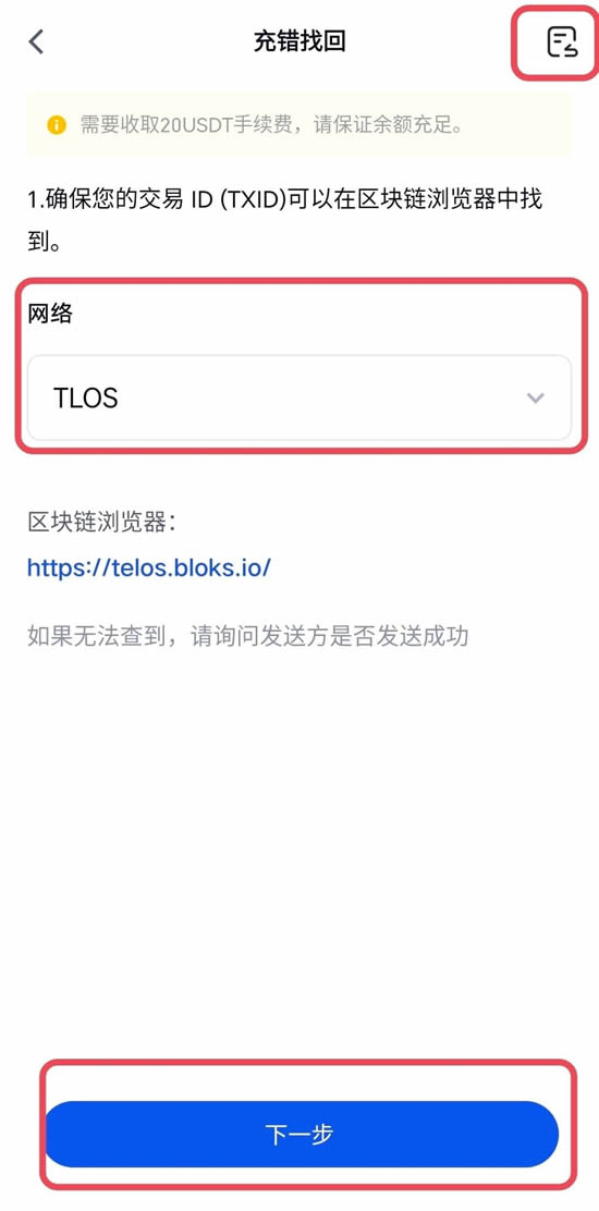 1、充值错误找回,需支付20USDT手续费,请确保余额的充足。