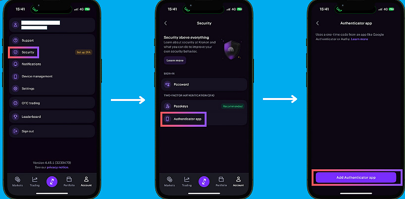 【Security】→【Authenticator app】→【Add Authenticator app】