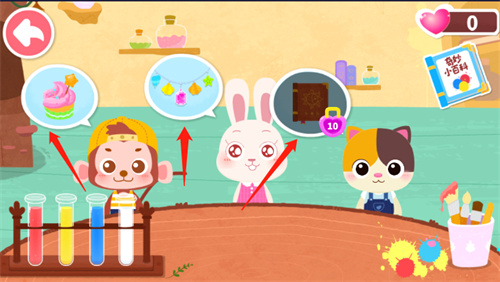 《奇妙手工调色》丰富的颜料色彩和实用小工具让孩子们能够自由发挥想象力和创造力。我发现游戏通过调色混合颜色的方式,让宝宝探索不同颜色的组合规律,这对强化颜色认知非常有帮助。此外,游戏还提供了涂色DIY功能,让宝宝可以根据提示给手工艺品涂色,锻炼他们的观察力和配色能力。
