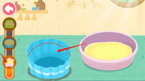 2、小编选择猴子,它要求我们给白的冰淇淋调色,先进行搅拌得到黄色颜料;