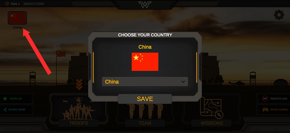 1、打开游戏后,先点击左上角选择国家。