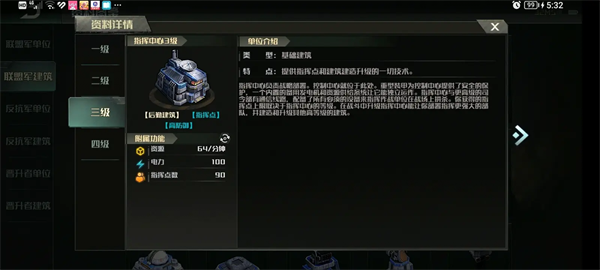 2级:提供:资源46/分钟,71度电,60点指挥点数。