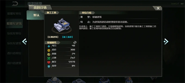 联盟军和晋升者的建筑部施工工地的生命和护甲都是:5970血,84甲