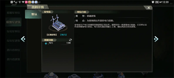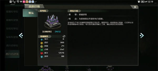 2级:0度电,400钱,48秒,需要至少1座施工工地,1座发电站,2座补给中心才能解锁升级