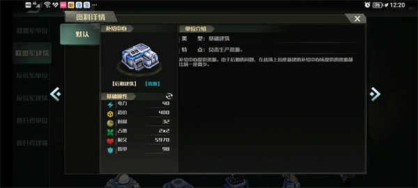 解锁建筑:施工工地上限2,突击车工厂上限2,特种车工厂上限2,空军工厂上限2,船坞上限2,基础防御塔上限3,炮塔上限2,防空塔上限4,海上防御塔上限3