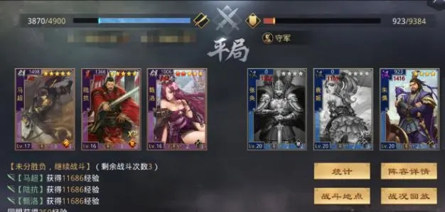 有细心的兄弟可能发现了,为什么开4开5不是整数呢,强迫症看了难受啊这是因为队伍中携带了磐阵善守,磐阵只会给兵力最低的武将高额减伤,因此要给前锋少挣一个兵,如果不如此,会给携带者这一次减伤这一个兵的细节很可能决定你开五是过还是不过。