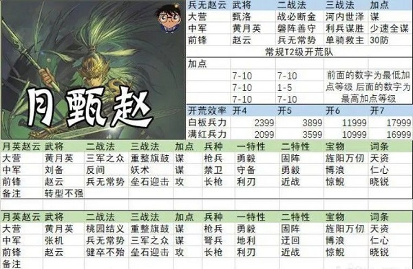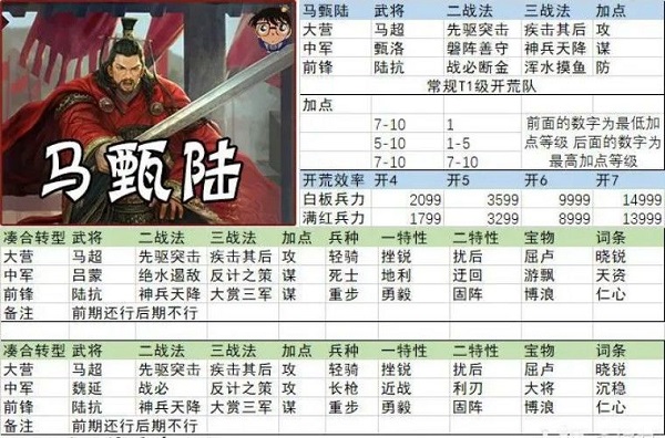 T1总共有三支队伍,马超就占了两只,剩下的一支自然就是我们的美人计-周泰,周泰自从被研发出来就稳稳占据t1宝座,不吃红,开荒稳等等优点稳固了其地位,但同时也有个致命缺点,打不了高级城和高级地