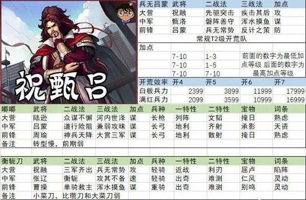 总结出来的十只开荒队,实际上开荒队远远不止这些,比如美人计,马超张辽,鬼吕开荒,甚至是更野的法正关羽,庞统开荒,但这些阵容往往有着更加致命的缺点,开荒太慢,或是无法转型。率土的乐趣之一就在于搭配,每个玩家都能搭配出最适合自己的开荒队士气不会导致这十队有大的变更,可能会有排名上的小幅差异。