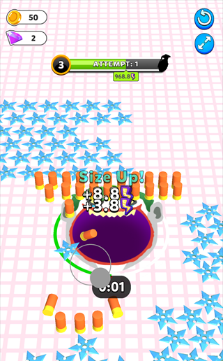 7、累积的金币可用于全面升级,例如提升黑洞的移动速度和体积,或者在商店购买独特皮肤与强力技能,打造个性化的战斗体验。