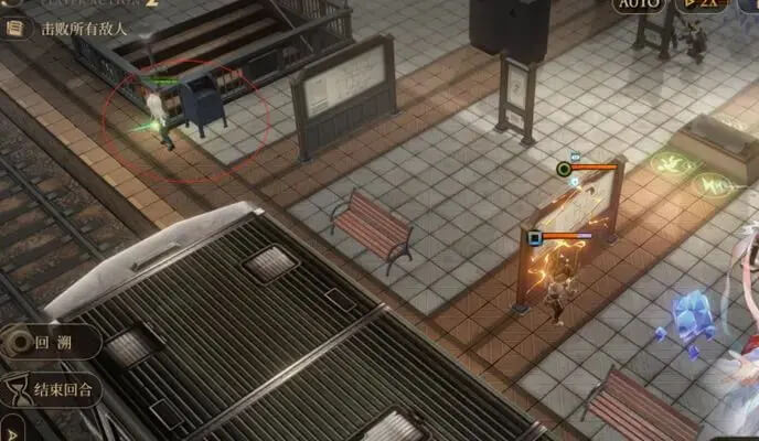 M210关卡需要我们在那个最靠近开局的路灯下待机3个回合即可,站位如上图所示,这个路灯有个特点就是灯一直在闪。