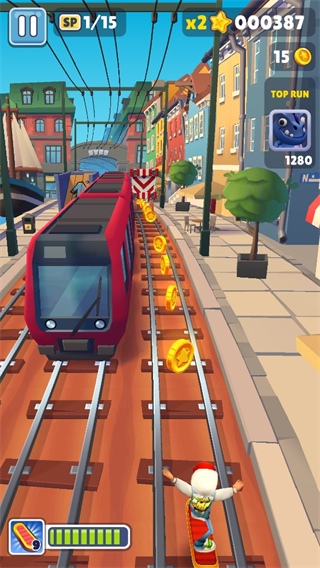 1、3D酷跑环游世界:每个版本深入一座城市风貌,全球美景与特色地铁场景绚丽呈现,视觉体验沉浸震撼。