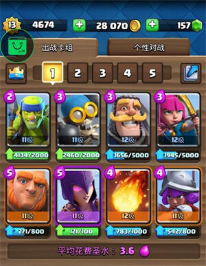 4、自由培养多样化卡牌组合,涵盖皇室角色、各类兵种、法术及防御单位。