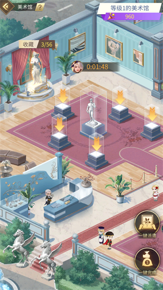 1、玩家可派遣同伴帮忙打理美术馆,同伴会自行将展览品摆放至柜台,开放美术馆。