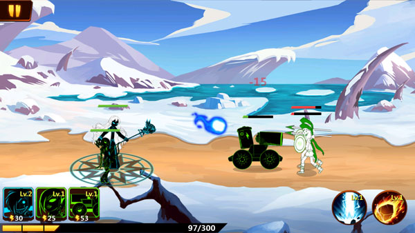 技能特效:每个英雄的独特技能都有酷炫的“火柴人风格”特效,配合打击音效,营造出“猛烈热血”的战场氛围。