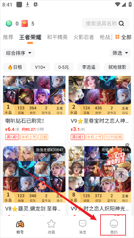 2、账号搜索与筛选:支持通过关键词精准搜索所需账号,也可按游戏类型、账号等级、皮肤数量、租赁价格等条件进行筛选,快速找到心仪账号。