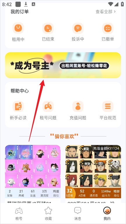 3、此页面提供了专门的号主服务功能,大家可以根据自己的需求合理选择