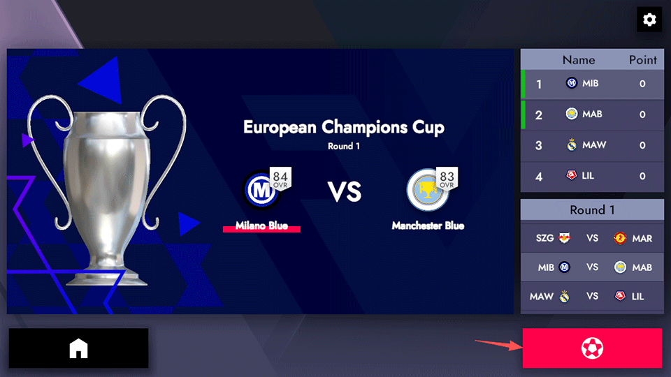 2、接着挑选喜欢的俱乐部,确认后点击右下角的足球图标进入设置界面。