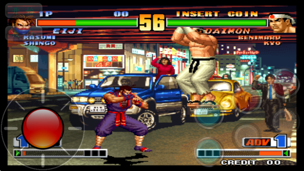 1、打开拳皇98单机版游戏,点击投币开始游戏