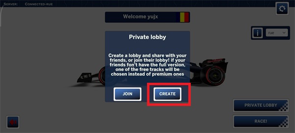 5、随后点击【CREATE】创建房间