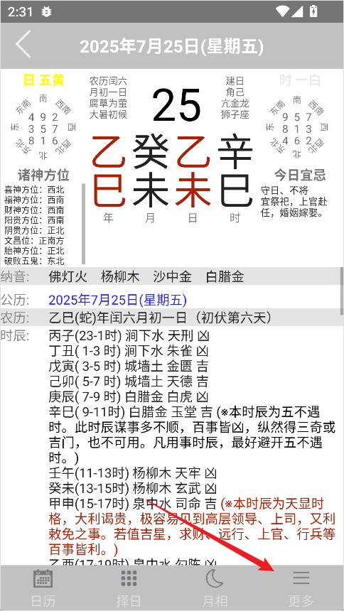 易学万年历App如何查看星宿信息