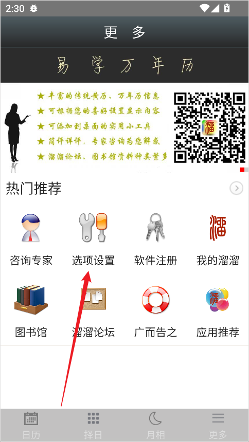 1、打开易学万年历App,点击底部导航栏中的【更多】选项;