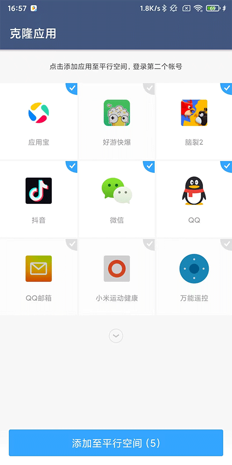 平行空间是一款可以帮助广大用户实现应用程序或游戏多开需求的Android系统工具。这款软件的实用度还是相当高的,对于想要多开社交应用或者是同时运营多个游戏账号的用户而言,简直就是手机之中的必备神器。平行空间让用户不必频繁进行账号切换,大幅提升了使用APP和玩游戏的效率。此外,这款软件也是对于隐私和个人信息保护的“宝藏工具”,使用一部手机就能实现工作一个号,生活一个号,生活与工作互不干扰。如有需要,不妨下载体验。