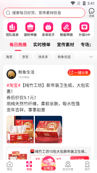 6.分享赚钱:将商品分享到朋友圈中你的朋友购买后即可获取商品分享的奖励。