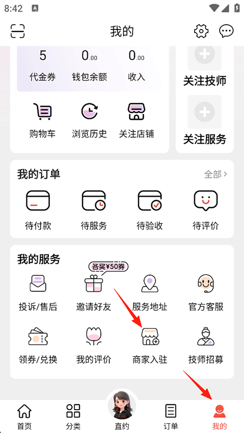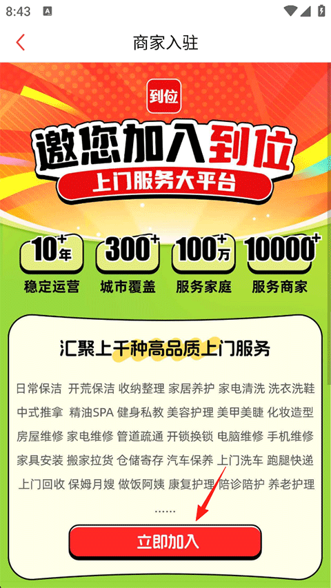 1、打开到位APP,点击我的-我的服务-商家入驻;