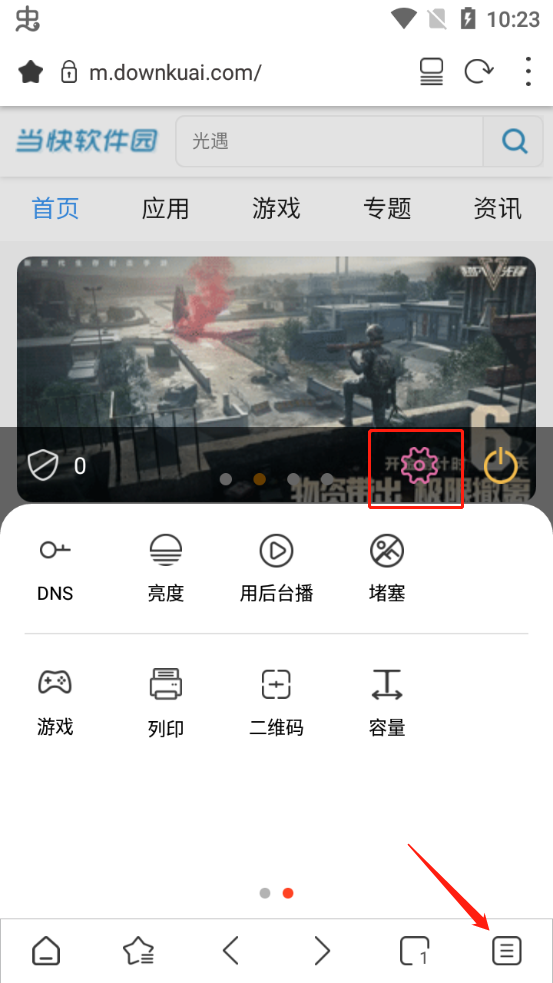 2、点击右下角的菜单按键,接着点击菜单上方的设置按钮,如图所示;