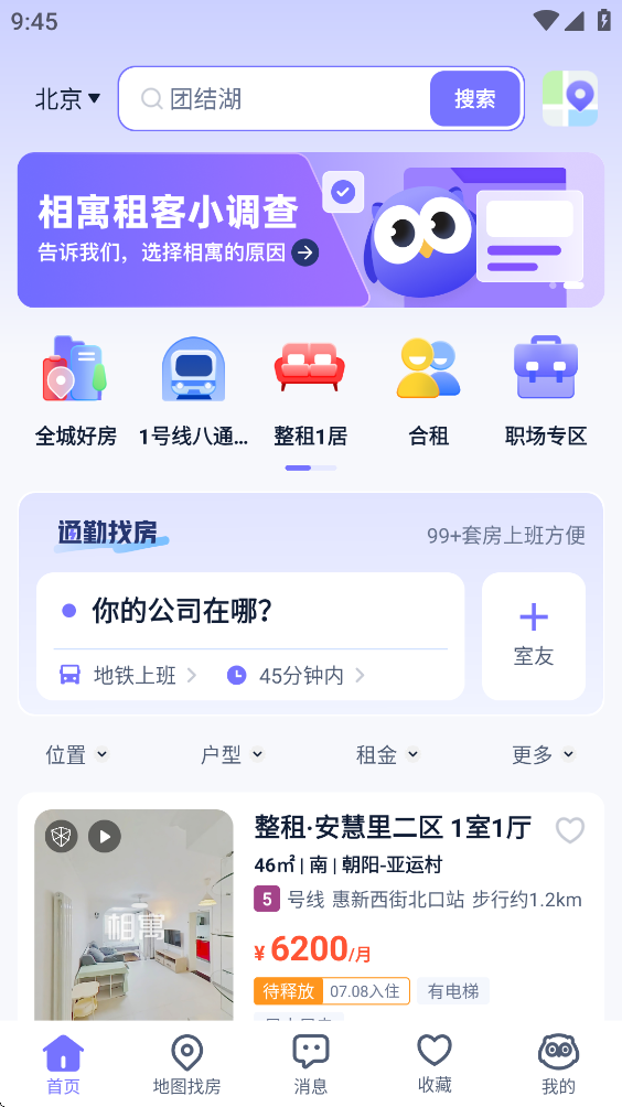 4、设置两人通勤地,智能匹配房源:输入两人公司地址、交通方式与时长,AI秒算交集区域并高亮推荐,北京/上海/杭州等10+城已上线,情侣/闺蜜/同事找房不再“折中”纠结。