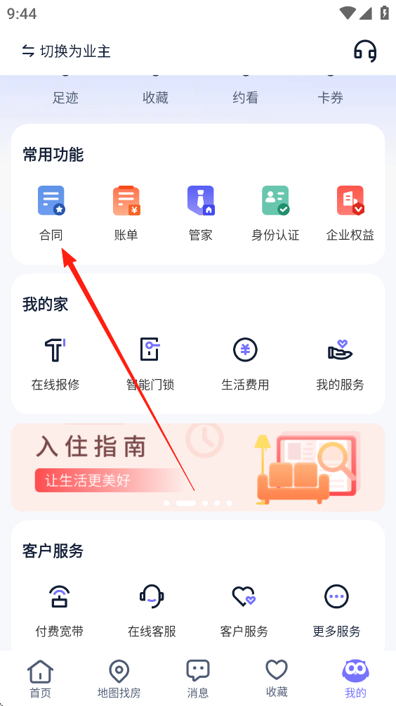 1、进入我的页面,点击我的合同