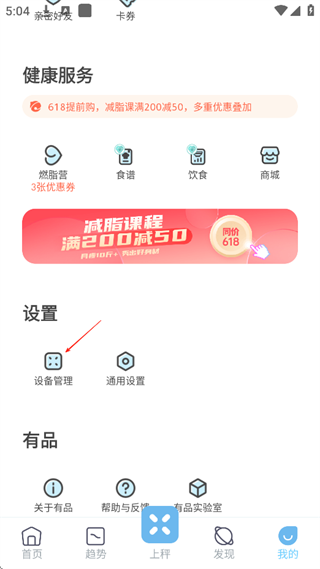 1、进入软件,点击“我的”页面,选择设置里的设备管理。