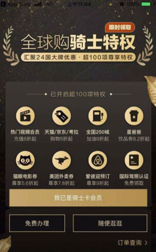 1、全球购骑士特权:汇集24国大牌优惠,尊享专属折扣优惠。