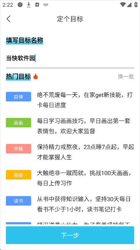 4、根据个人计划,完善目标的详细设置,如周期、提醒方式或阶段节点。