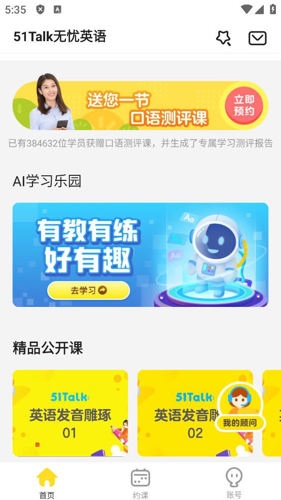 51Talk是专为广大青少年开发的英语学习软件,将众多外教汇聚一堂,与母语者进行交流无疑是提升口语水平的好方法,有了这款APP,学习英语更无忧。此平台不仅仅提供了发音纠正的功能,还有词汇、句式以及语法的相应学习板块,帮助孩子从听、说、读、写四大方面提升英语水平。此外,51TalkAPP不仅拥有海量的精品线上付费课程,更有免费的公开课程可以学习。有需要不妨下载安装试一试,用科学合理的计划和方案进行学习才能事半功倍。
