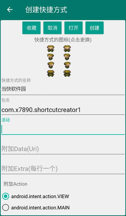 5、在详情界面,可以自定义快捷方式的名称、包名以及活动内容,操作简单方便。
