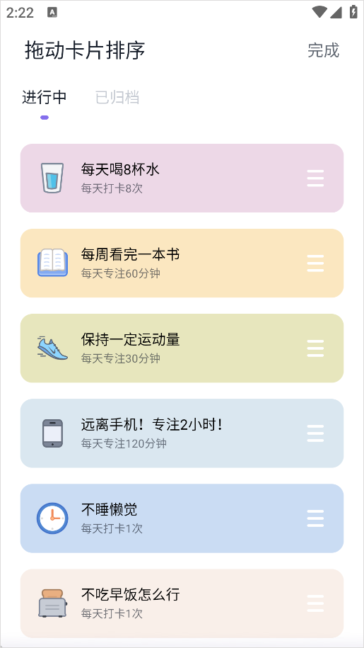 4、每个习惯可设定多个提醒,还能自定义提醒时间,确保不会错过打卡时间。